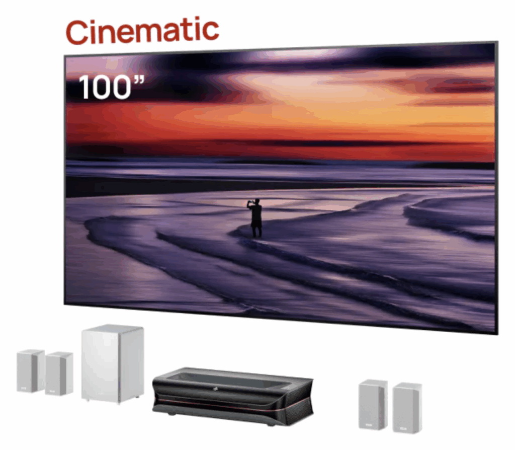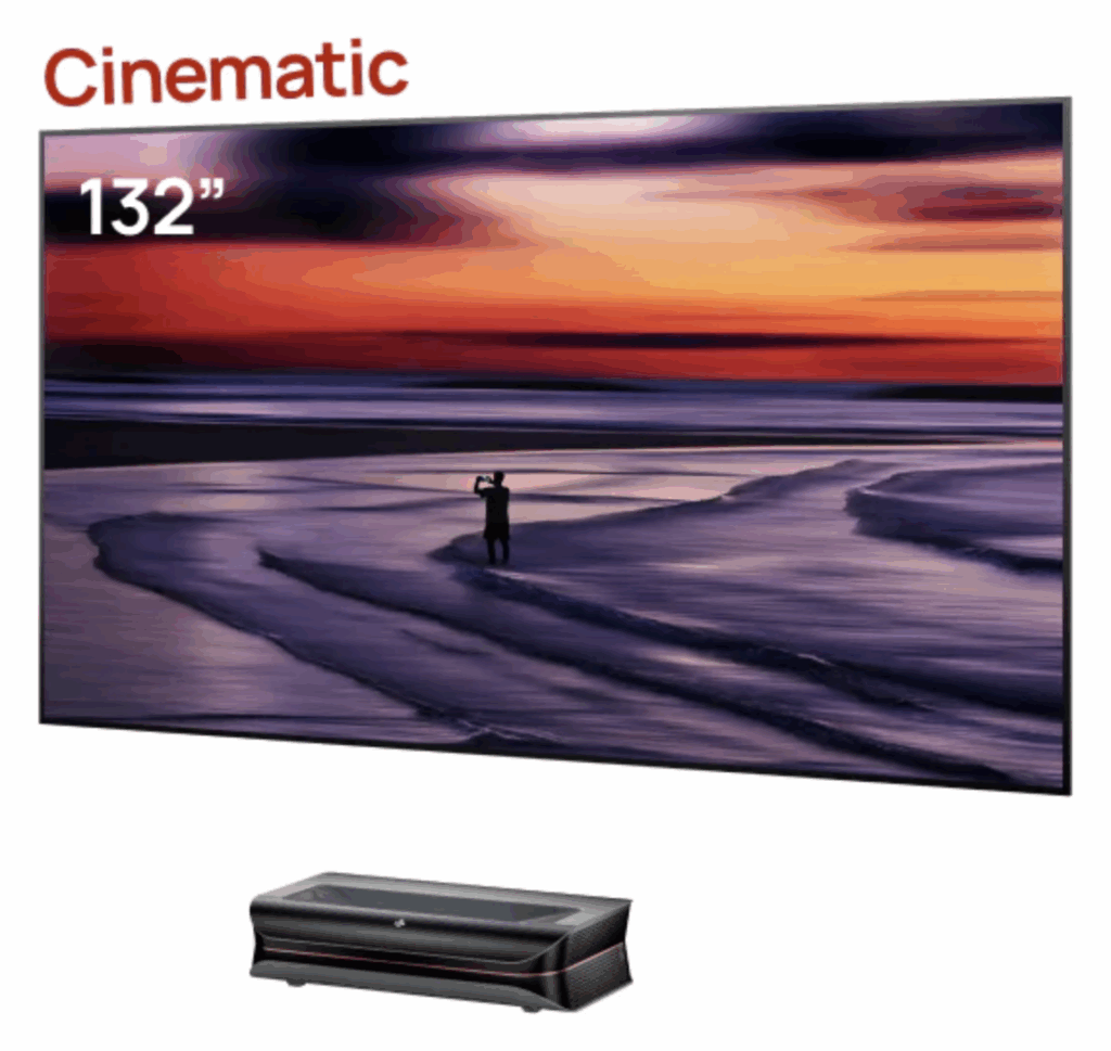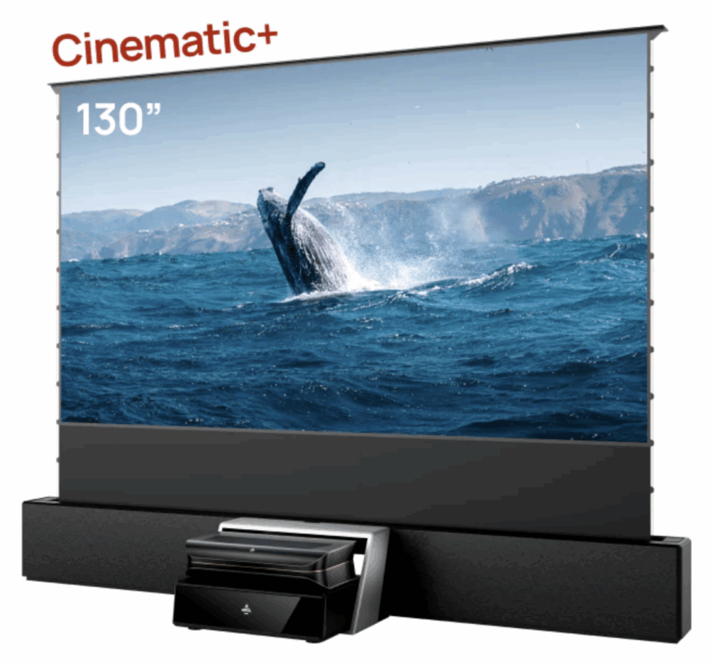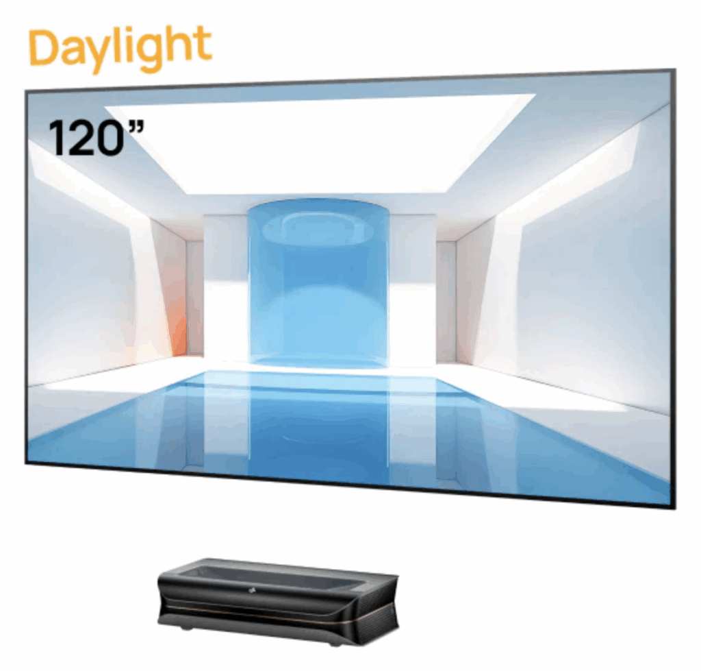 You can purchase the Formovie Cinema Edge single-laser 4K UST projector with the 120″ Spectra Projection Helios fresnel ALR projection screen [at Amazon]